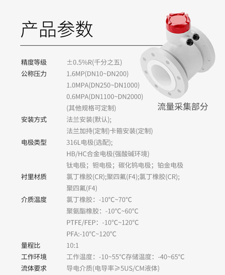 电磁热量表主要是对热交换系统中载能介质(液体水)的供水温度、回水温度及瞬时流量进行实时测量,并按照热力学能量计算公式,对系统消耗的冷量或热量值进行计算并保存的装置。其中电磁式流量传感器是通过法拉第电磁感应定律,将瞬时流量信号线性的变化为感应电动势这一电信号,从而得到瞬时流量信号。计算器将流量信号与温度传感器采集的温度信号进行积算,得出我们需要的能量值。