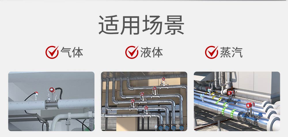 涡街流量计是速度式流量计的一种,基于卡门(Karman)旋涡原理研究设计的,主要用于工业管道中介质流体的流量测量,如:气体、蒸汽或液体等多种介质的流量控制和计量。涡街流量计广泛应用于供热、供气、化工、环保、冶金、纺织、钢铁、医药、造纸、排水等厂矿企业对过热蒸汽、饱和蒸汽、压缩空气和一般气体(氧气、氮气、氢气、天然气、煤气等)、水和液体(如:水、汽油、酒精、苯类等)的计量和控制。