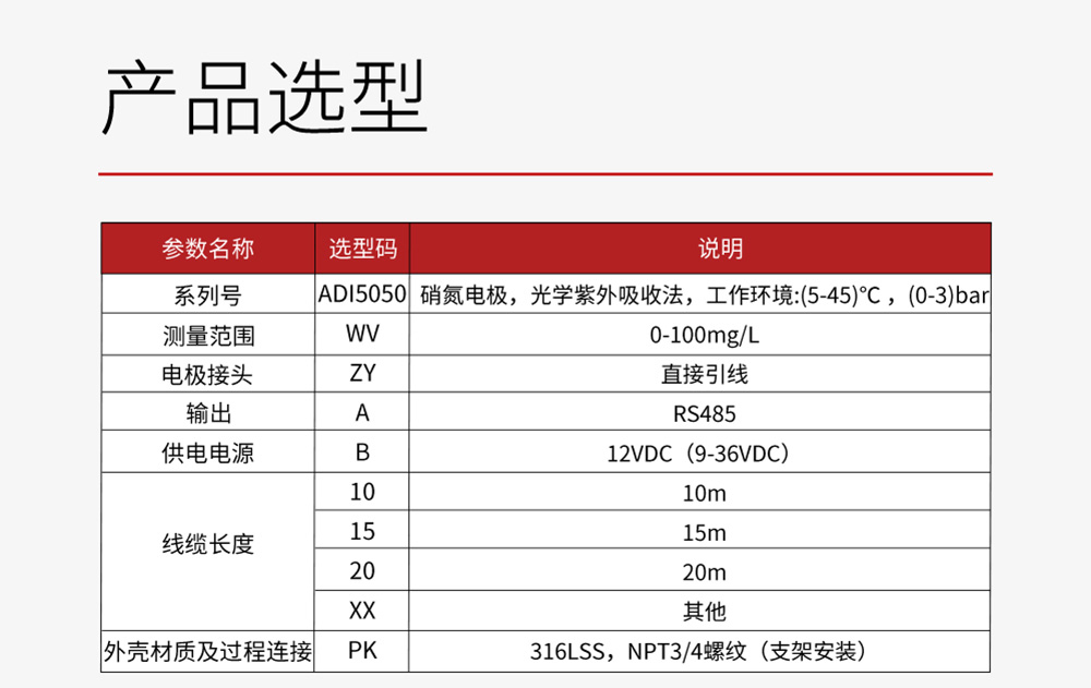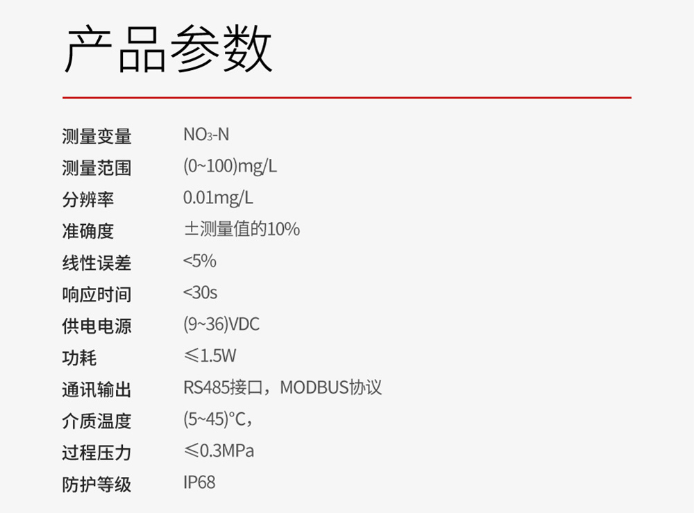 MIK-ADI5050款硝氮电极是基于紫外光吸收法测量,一种利用紫外光谱分析技术,直接、快速、准确地测量水体中硝态氮(NO₃-N)浓度的先进在线监测设备。通过校正公式消除有机物干扰,最终根据朗伯-比尔定律将计算出的净吸光度值实时转换为硝酸盐氮(NO3-N)的浓度值,并通过数字信号输出。
