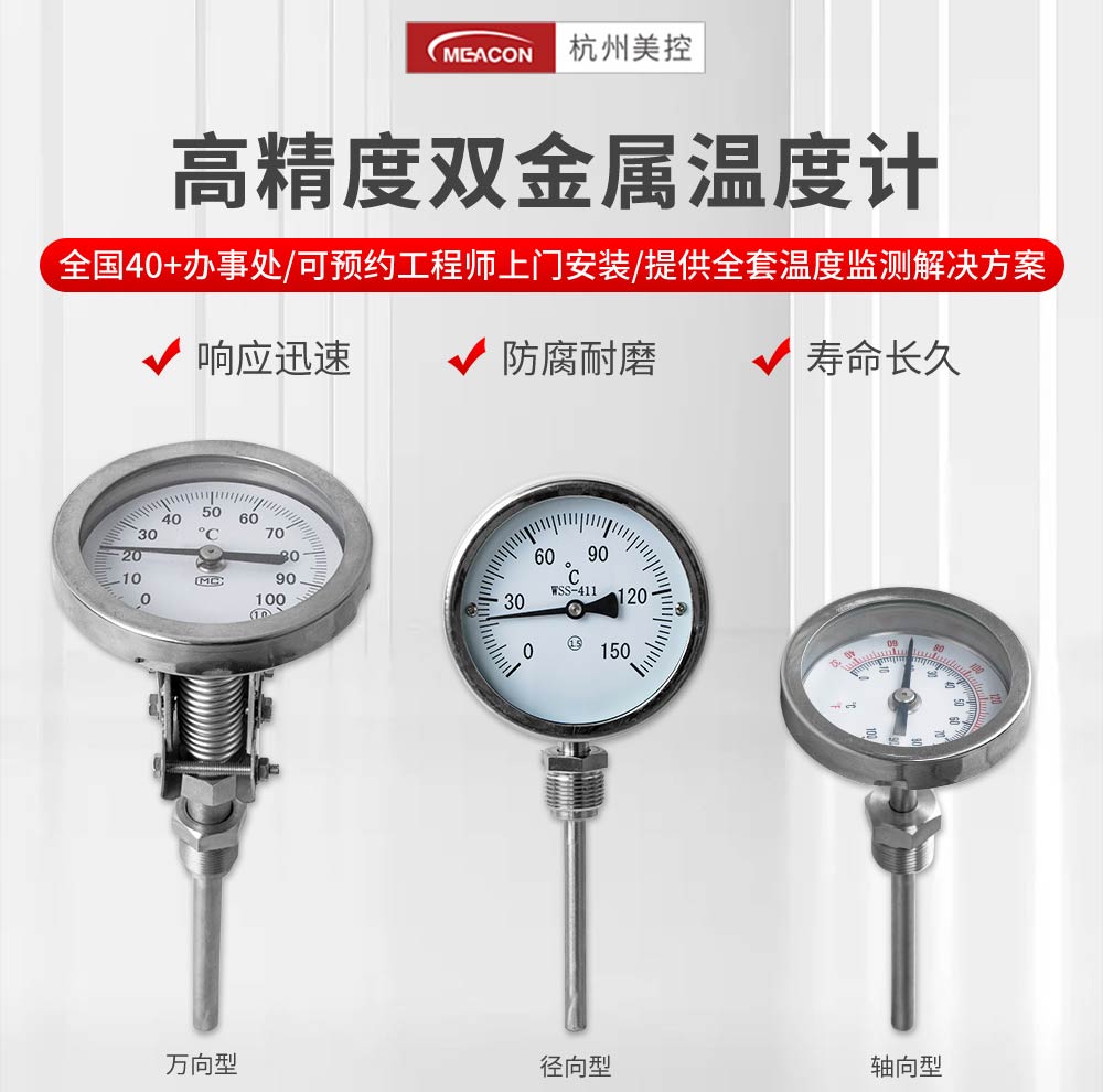 杭州美控仪表专业生产不锈钢径向、轴向、万向工业用双金属温度计可用于窑炉、烤箱、管道,测量气体、液体、蒸汽的温度