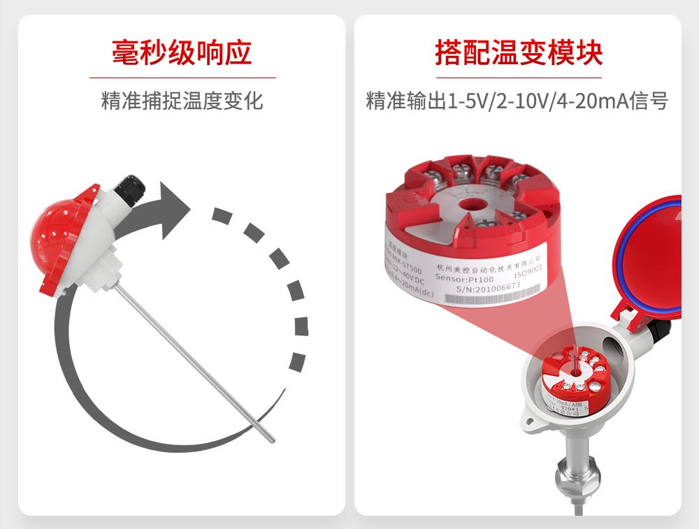 4-20mA、1-5V可选(需另外搭配温度变送模块)