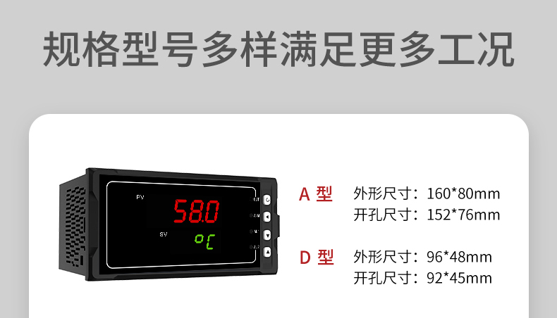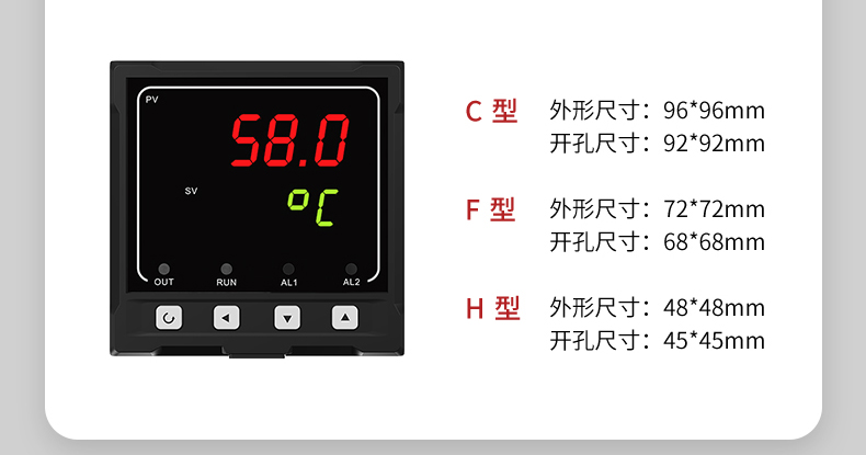 MIK-2700系列单回路数字显示控制仪(简易型),傻瓜式操作,0.3级测量精度,7款外型尺寸,双四位LED显示,可支持热电偶、热电阻、电压(可开方运算)、电流(可开方运算)及变送器输入,适用温度、压力、流量、液位、湿度等工业过程量的监测。